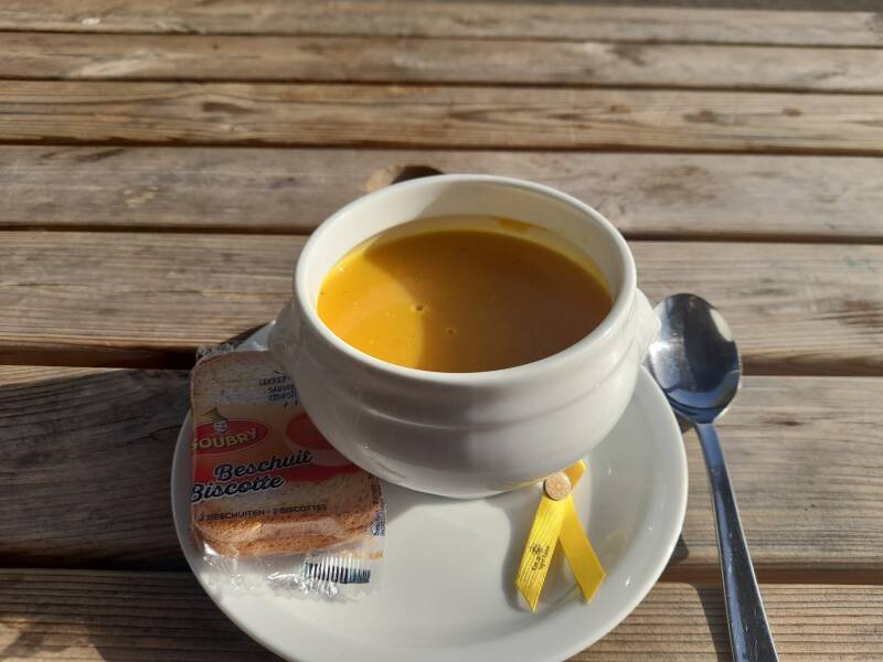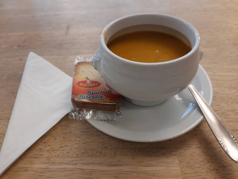 Hieronder zie je de lekkere wortelsoep die ik gegeten heb in het cafetaria.