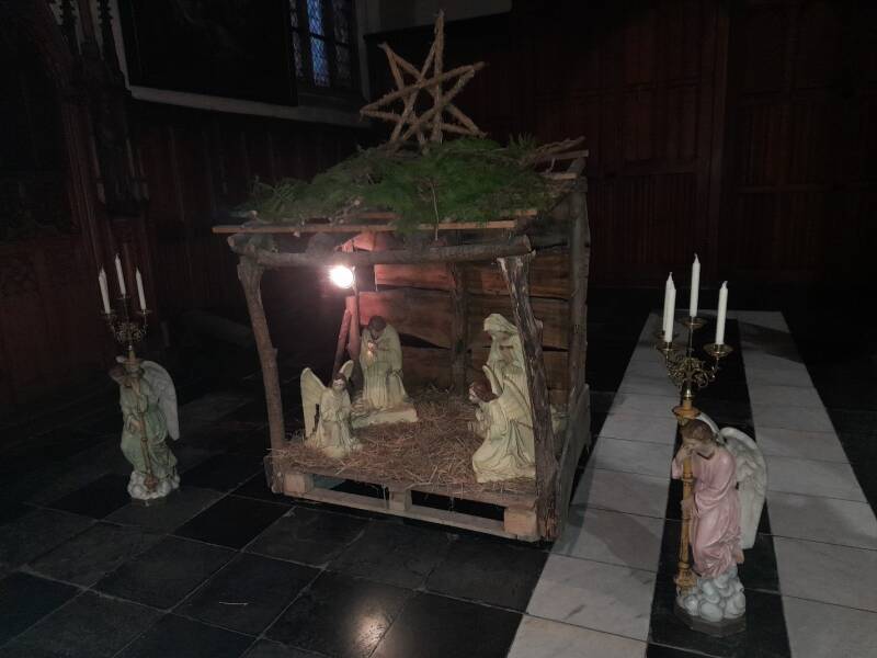 Om 19:00 had ik afgesproken met mijn vrienden aan de Sint Martinus kerk in Ekkergem om mee te helpen bij het opstellen van de kerststal. In de kerststal staan Maria, Jozef en twee engelen te wachten op de komst van kindje Jezus.