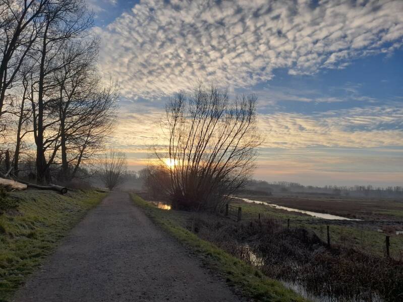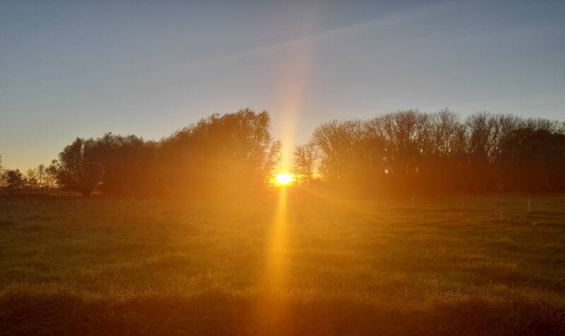 Hieronder zie je een foto van de zonsopgang die ik tijdens mijn wandeling op 8 december 2022 heb gemaakt: