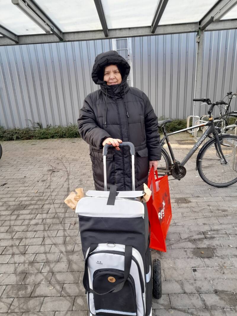Onderstaande foto toont mijn moeder toen wij samen boodschappen gingen doen.