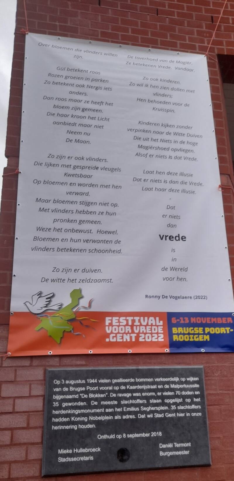 In onze wijk hingen twee mooie vredesboodschappen: