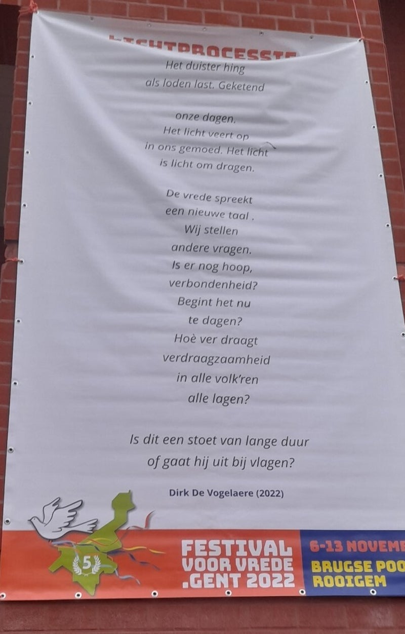 Op onderstaande foto zie je mij met de fakkel van het vredeslicht in Drongen. Meer informatie over het vredeslicht vind je op de website: www.vredeslicht.be