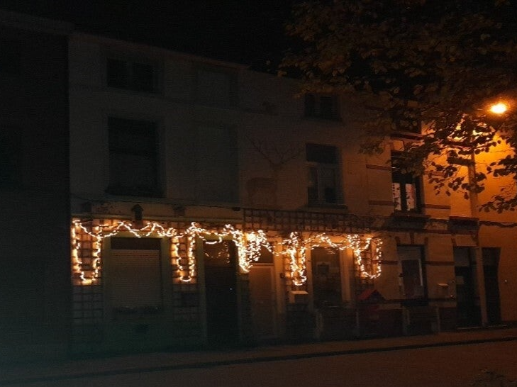 Na mijn wandeling heb ik samen met mijn buurman de kerstverlichting opgehangen aan onze gevels. Het resultaat zie je op de foto hieronder.